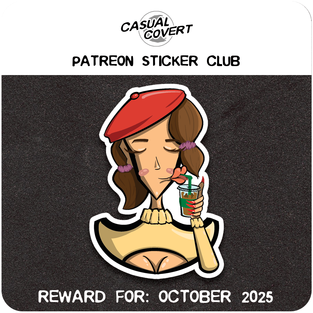 From now till October 31st, if you sign up for the Casual Covert Patreon Sticker Club, your gonna get the always SUCKIN and EXCLUSIVE Slupin Staci sticker!