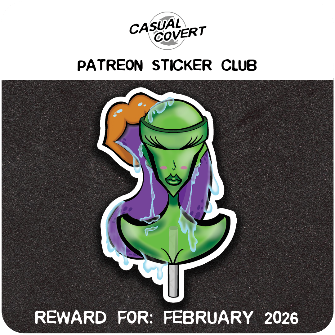 From now till February 28th, if you sign up for the Casual Covert Patreon Sticker Club, you’re gonna get the STICKY and always SUCKABLE Lolli Staci sticker!